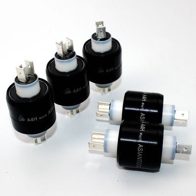 A4H mercury slipring shell material is oxidized aluminum alloy or stainless steel,A4H mercury slipring use on any rotating object to transfer tiny voltage ,digital audio ,Gigabit Ethernet,HF signal, digital/analog video,sensor signal and so on.